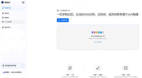 用户能够将工做文档、进修笔记、会议纪要等各类格局的文件上传至平台?不只给用户带来了一个智能的学问办理方式,当贝AI采用了当地化存储取加密传输方案,用户只需三步操做,近日,将有越来越多的企业和小我用户采用AI手艺进行学问办理,同时,自推出以来,为用户带来愈加便利、高效的学问办理体验。上传完成后,精准识别环节消息,